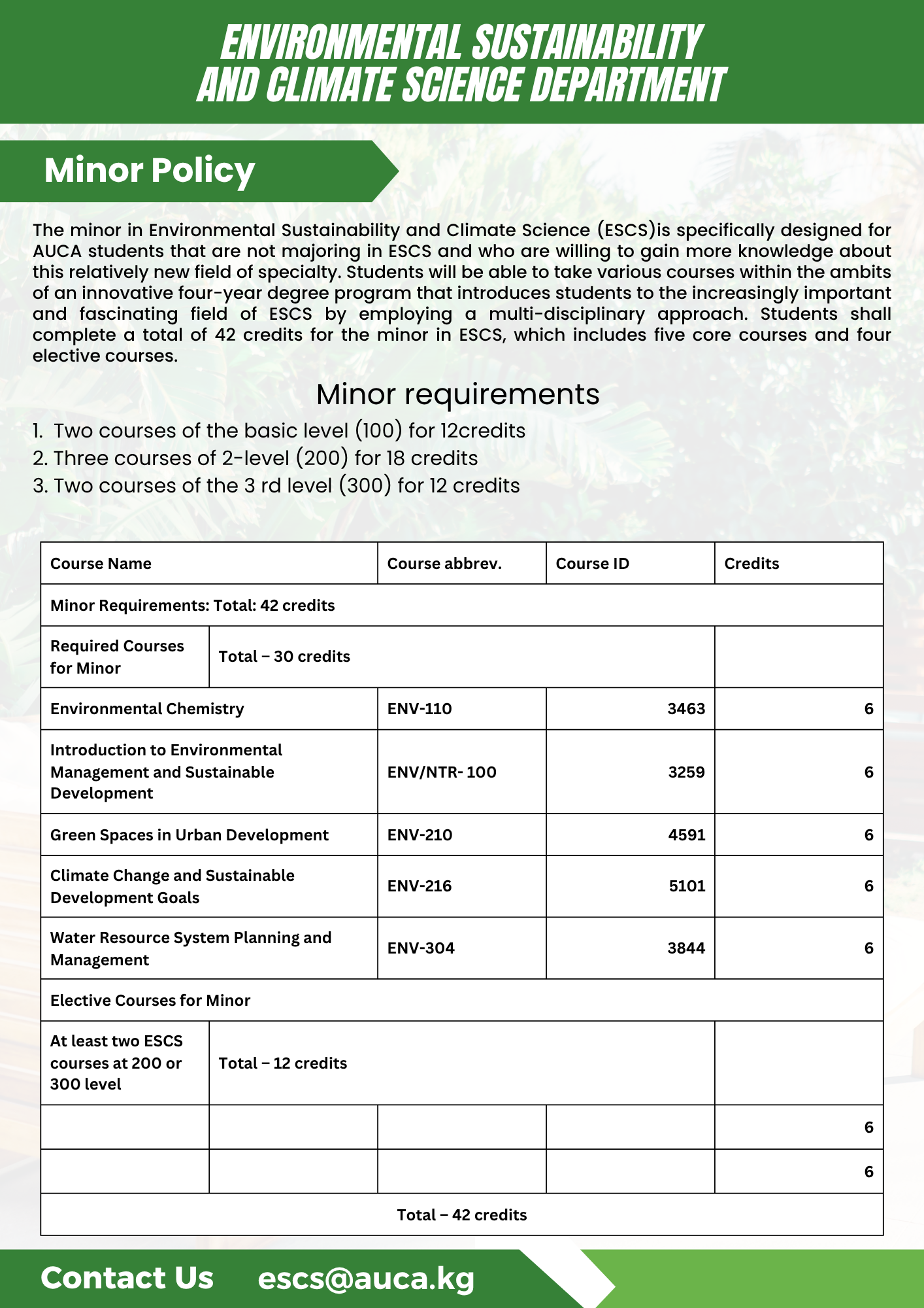 ÃÛÌÒÓ°Ïñ/ Academics/ Academic Divisions / Schools/ Division of Applied Sciences/ Environmental Sustainability and Climate Science Department/ REQUIREMENTS/ Minor Requirements